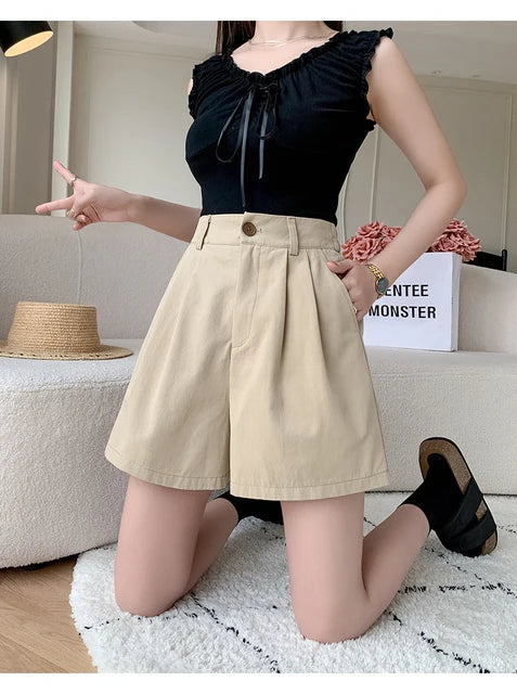 Step out in style with UrbanEase, Korean-inspired A-line shorts featuring solid colors, button details, and trendy side slits. Perfect for summer streetwear, these loose, chic shorts combine comfort and fashion effortlessly.